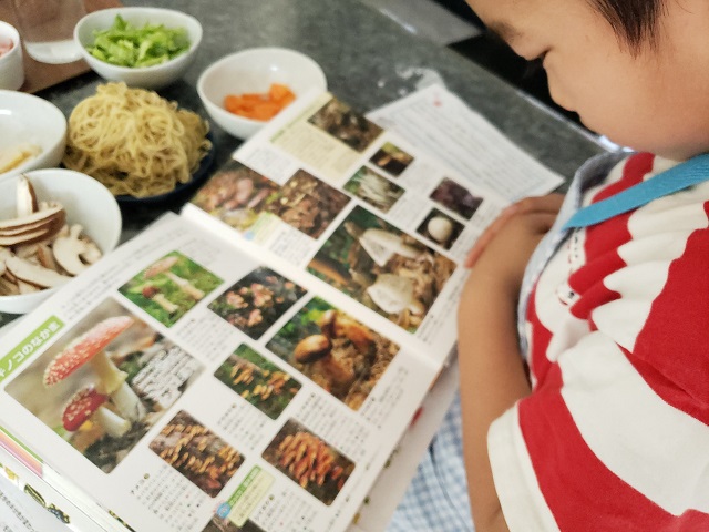 また、図鑑を開き、「えー!こんな色のきのこがあるの!?」「これは毒キノコだね!」と