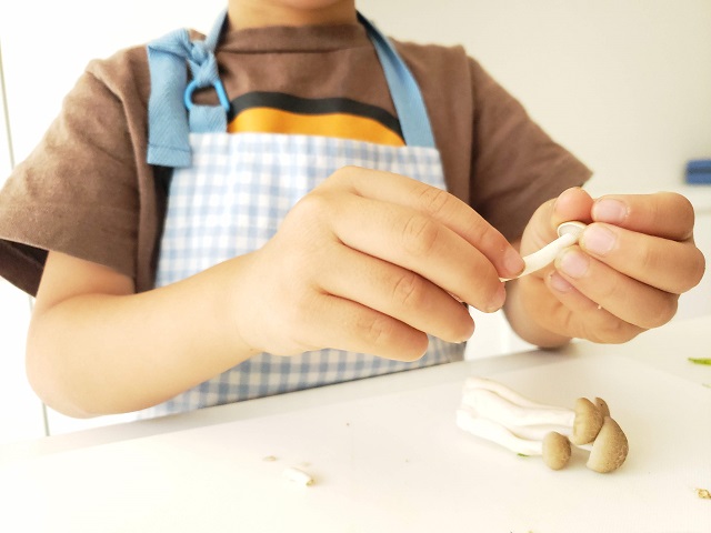 「きのこのかさの内側が苦手」「ぬるぬるしているのが苦手」と手で触れることが難しいお子さんもいます。 まずは、触れそうなきのこから挑戦してみて。