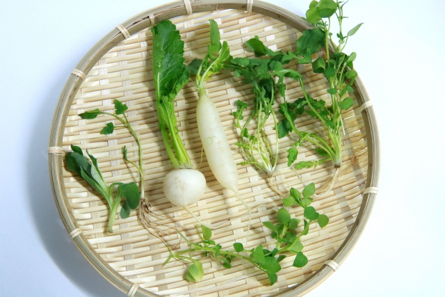 春の七草(せり・なずな・ごぎょう・はこべら・ほとけのざ・すずな・すずしろ)を入れたおかゆを食べる、日本の伝統行事食です。